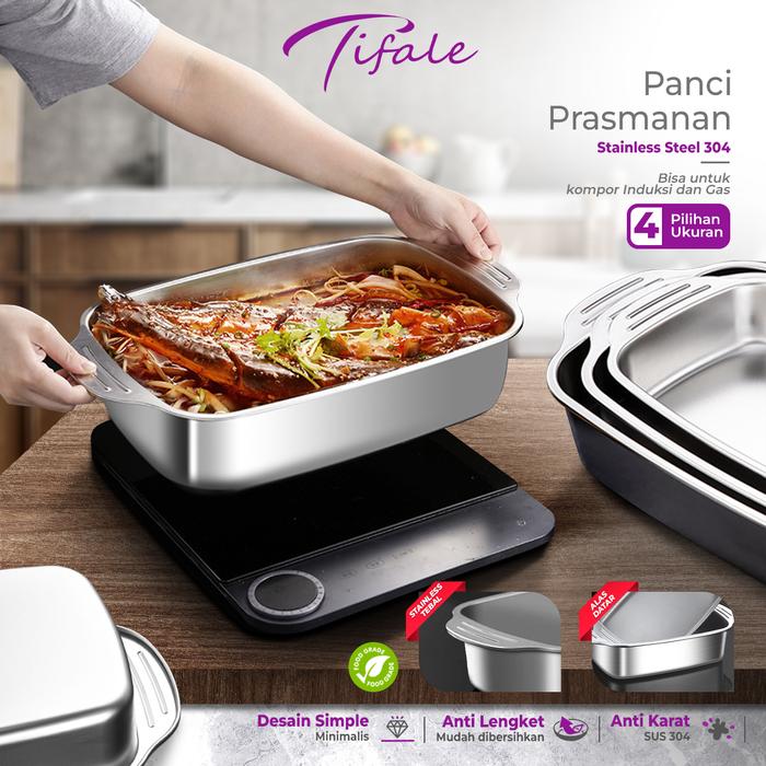 Tifale Panci Prasmanan Stainless Steel 304 - Cocok untuk Kompor Induksi & Gas - 4 Pilihan Ukuran