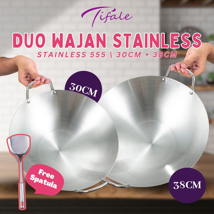 Tifale B1G1 38CM + 30CM Wajan Stainless steel anti lengket PFOA FREE SUTIL RANDOM - 30CM + 38CM Free Spatula