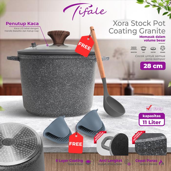 Tifale Xora Stockpot 11L 28cm – Panci Gentong Granite Anti Lengket dengan Tutup Kaca [VER 5]