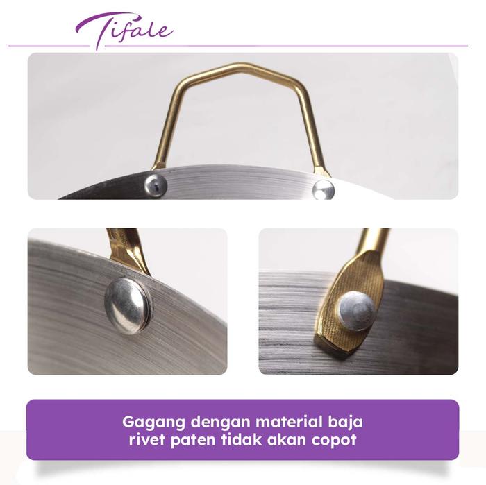 Tifale Wajan Stainless Tebal Pegangan Stainless g0oldd Premium Quality Masak Nasi Penggorengan Steel Kitchenware