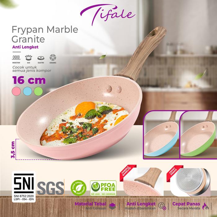 Tifale Lumi Frypan Marble Granite 16 cm - Anti Lengket PFOA Free Cocok untuk Semua Jenis Kompor - 16CM - PINK