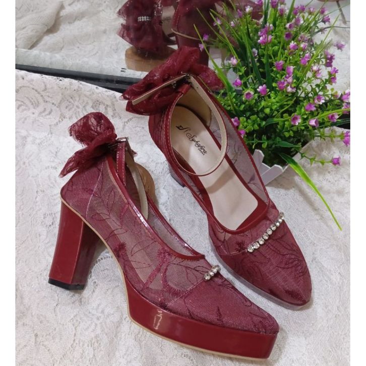 SYHAFIRA FROZA SEPATU WANITA SEPATU PESTA HEELS WISUDA HAK TAHU 9 CM MAROON