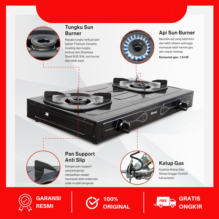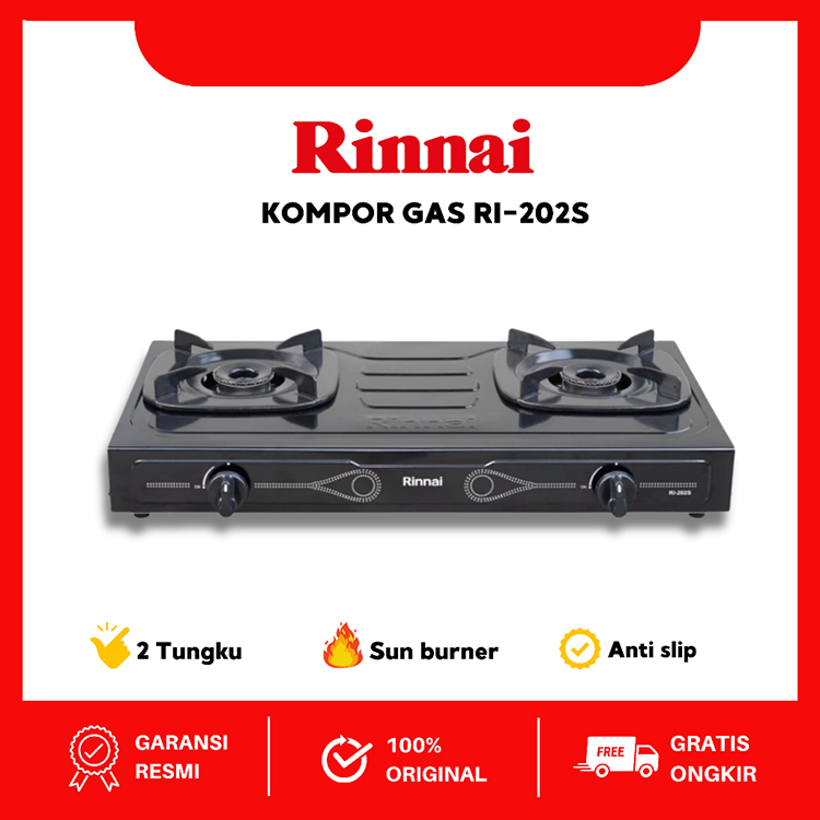 Kompor Gas Rinnai 2 Tungku Ri 202S Garansi Resmi