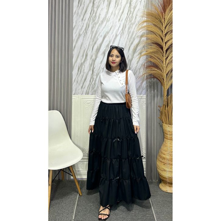 Rok Wanita Fashion Peony Ribbon Alice Midi Skirt Ruby Rok Coquette Korean Style Kekinian Bebas Ongkir