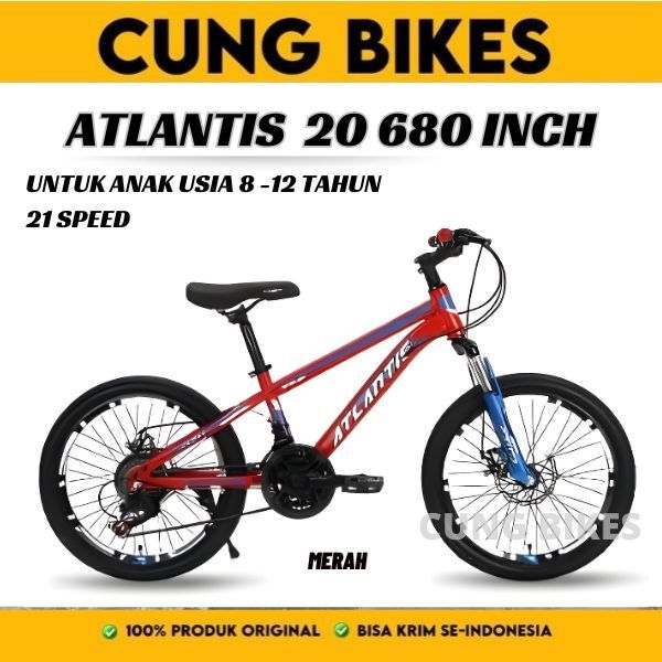 Sepeda Gunung Anak Atlantis ukuran 20 Inch 680 Usia 8-12 Tahun 21 speed