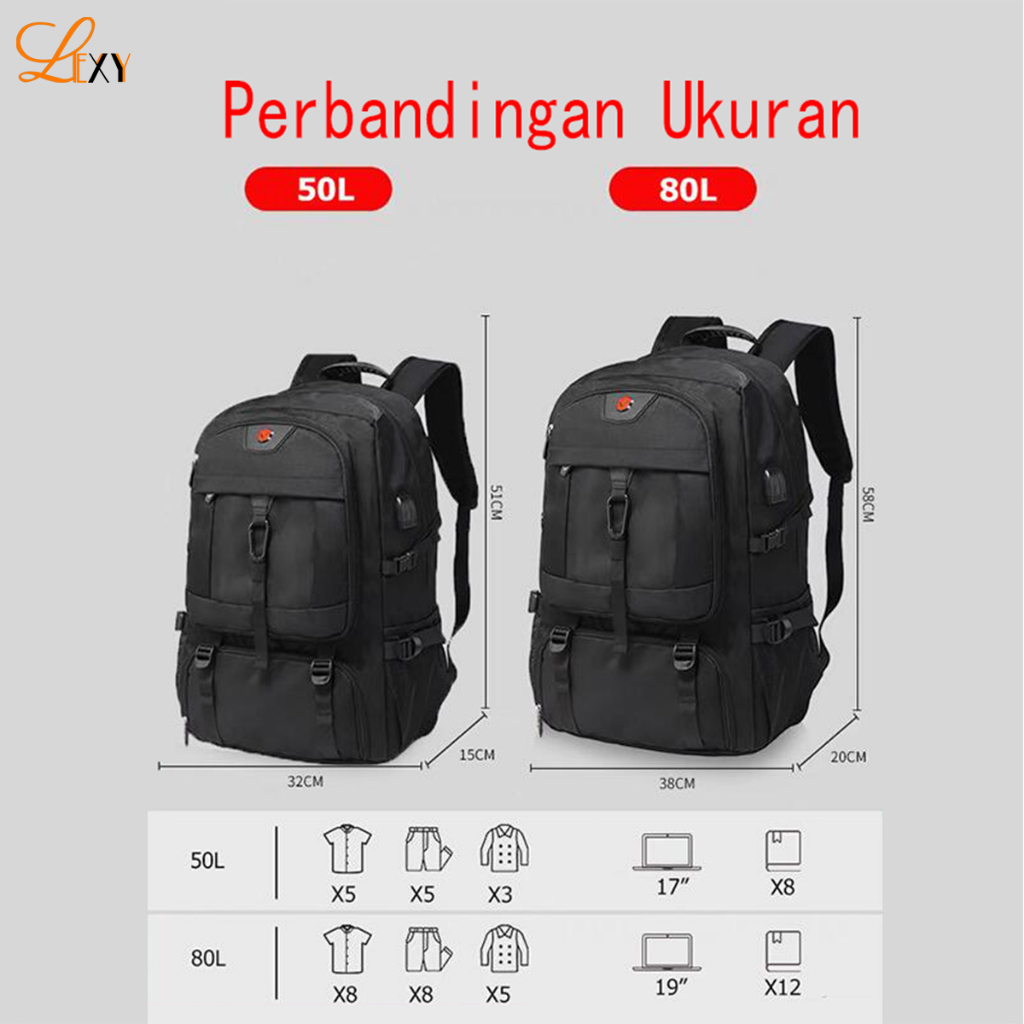 (FLASH SALE) LEXY Tas Ransel Traveling Multifungsi Pria Luar Ruangan Tahan Air Tas Gunung 50-80Liter