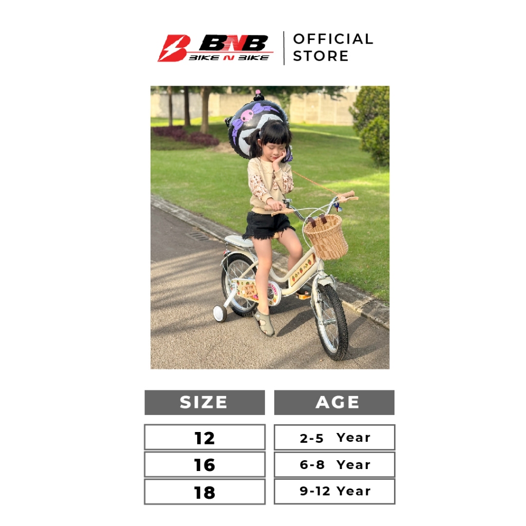 Sepeda Anak Perempuan BNB City Bike TEDDY Size 12 16 18 inch Ban 2.125 (Design Classic dengan corak yang lucu)
