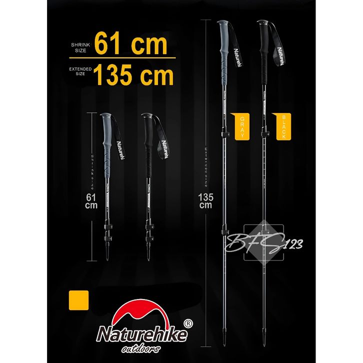 Tongkat Gunung Trekking Pole Naturehike ST03 NH17D017 Alum1nium Aloy 7075 Tongkat Pendaki Panjang 61-135 Cm