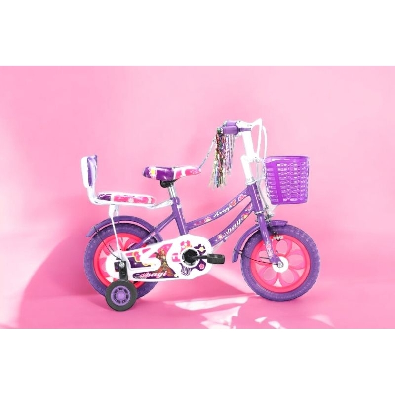 Sepeda mini anak perempuan ban busa 12" 2sd 4 tahun roda bantu lucu menarik
