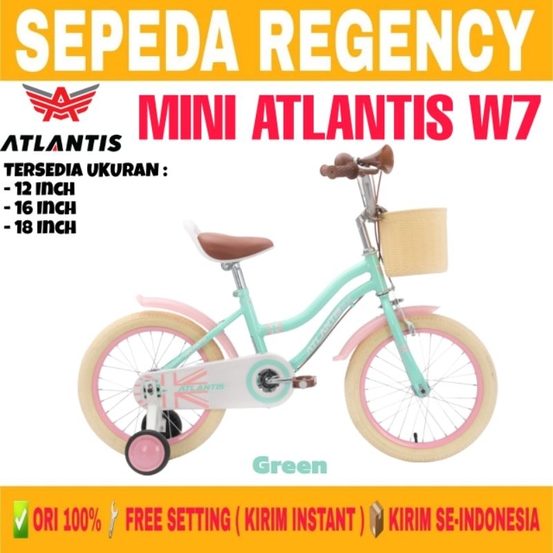 Sepeda Anak Perempuan ATLANTIS MINI W7 WT Keranjang Ukuran 12 16 18 Inch Usia 2-8 Tahun