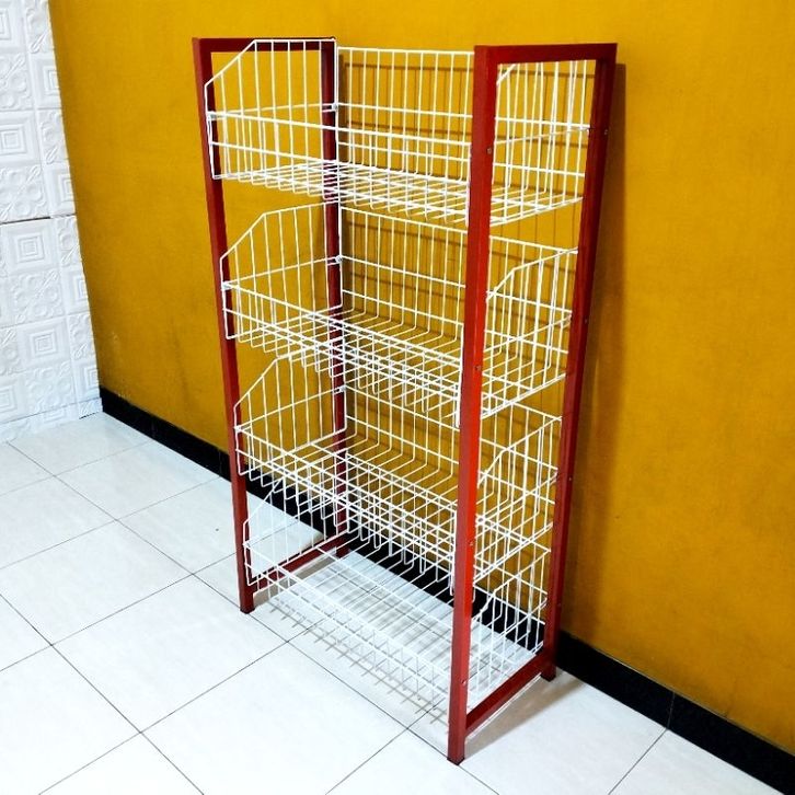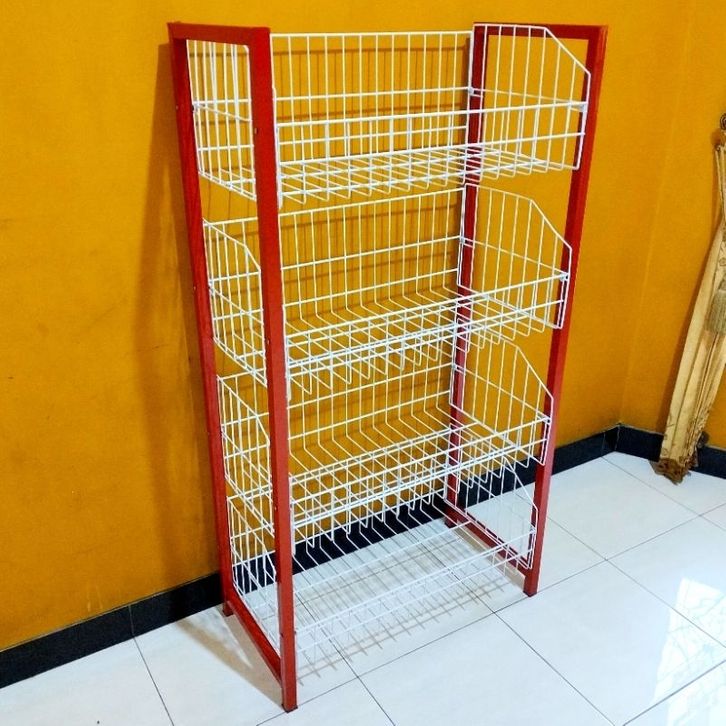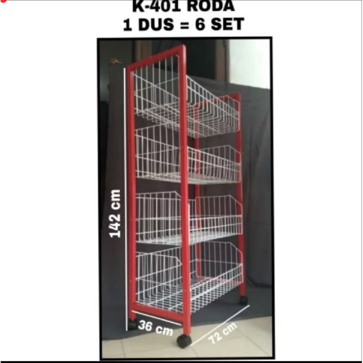 Rak Ciki Minimarket Susun Rak Toko Kotak Roda Rak Minimarket Tebal K401 Susun 4