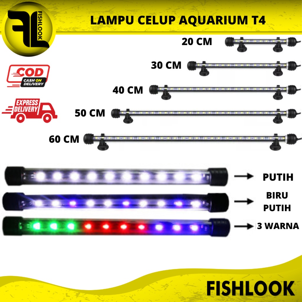 Lampu Celup Led T4 20 30 40 50 60 cm Aquarium Aquascape Akuarium Free Packing Kardus Tebal Terlaris Termurah