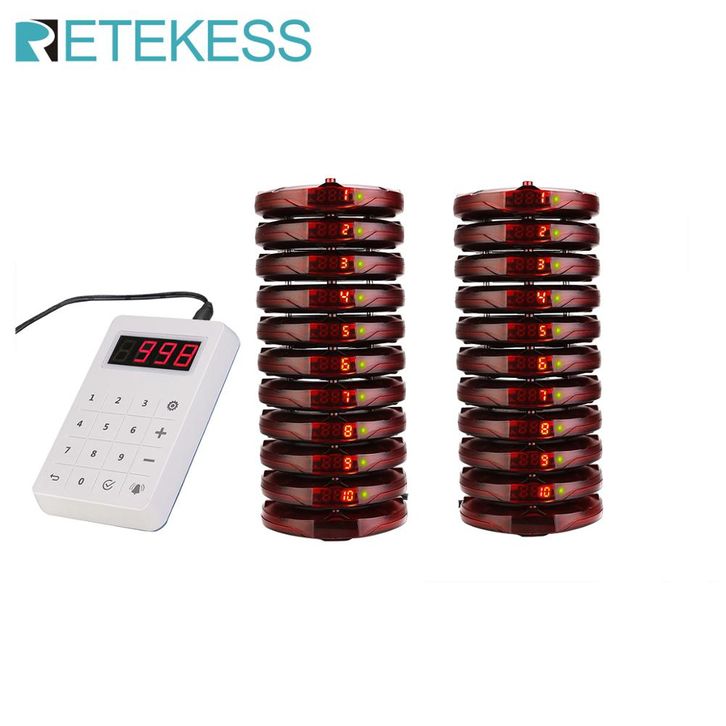 RETEKESS TD158 WIRELESS GUEST PAGING CALLING SYSTEM MESIN ANTRIAN MODEL BULAT BISA GETAR BUNYI DAN LAMPU KEDAP KEDIP