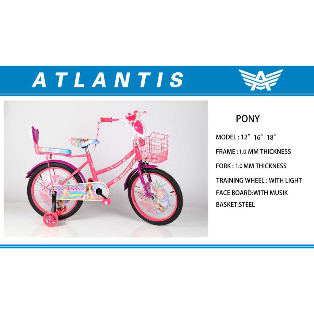 Sepeda Mini ATLANTIS Untuk Anak Perempuan Umur 3-8 Tahun Bonus Botol Air