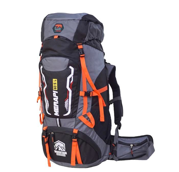 tas gunung Zarventure Merapi Tas Gunung Carrier 60+5 Liter - ZA MERAPI NAVY ABU TAS+COVER 60 L
