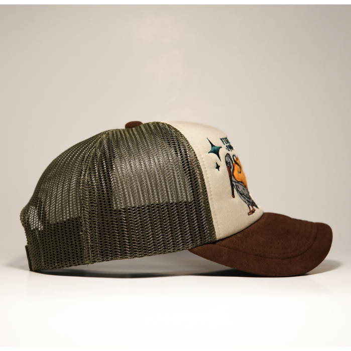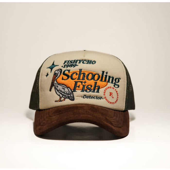 Fishycho Schooling Fish Trucker Hat Suede Drill