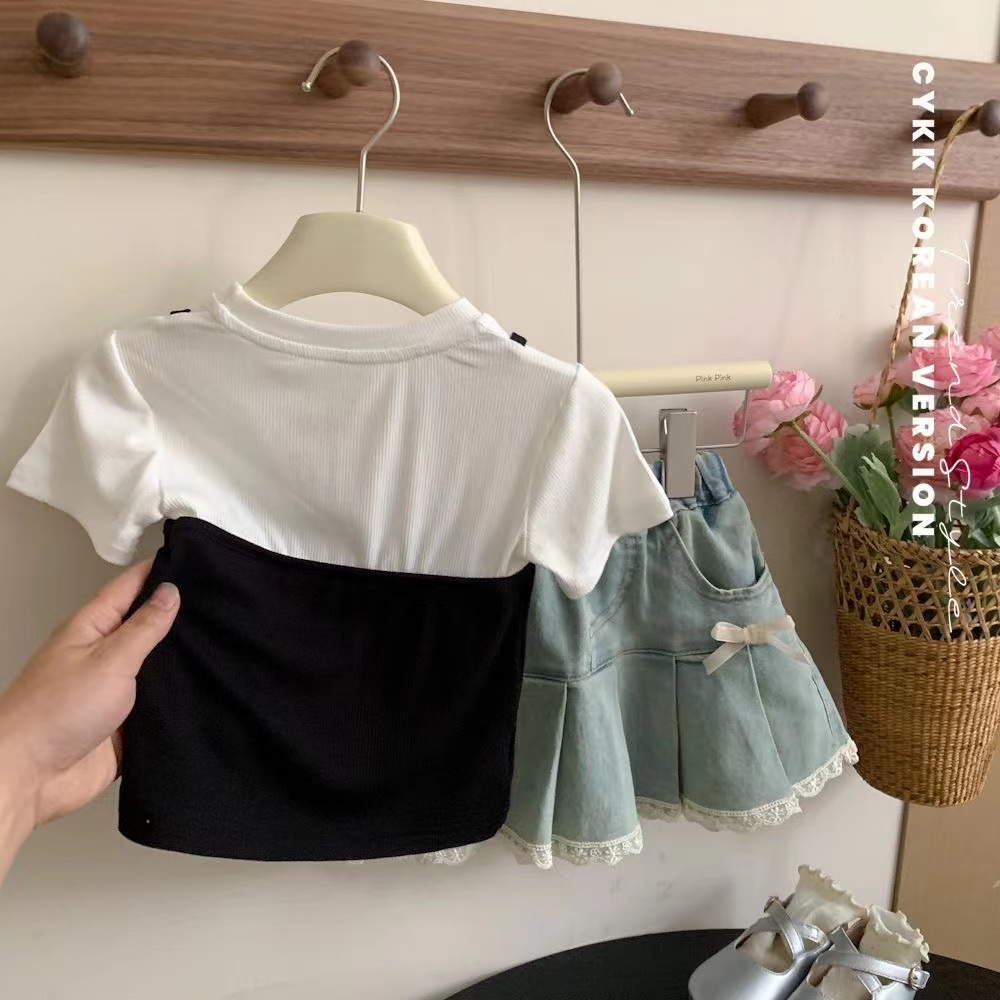 2-10 Tahun Atasan lengan pendek pita katun anak perempuan Korea yang baru