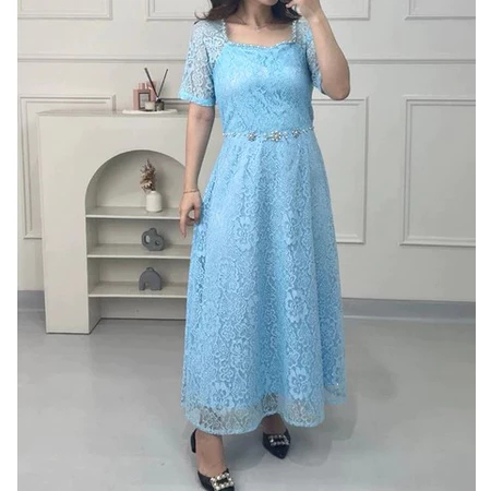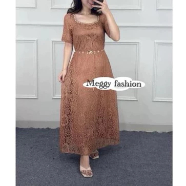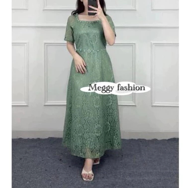 Caren Long Dress New Model Dress Pesta Brokat Aplikasi Mutiara Pakaian Kondangan Simple Dan Elegant