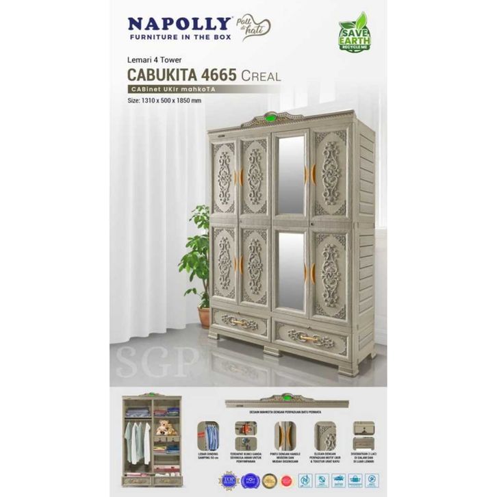 Grosir LEMARI CABUKITA 4665 PINTU 4/LEMARI NAPOLLY/LEMARI PAKAIAN/LEMARI PLASTIK JUMBO/LEMARI GANTUNG Elegan