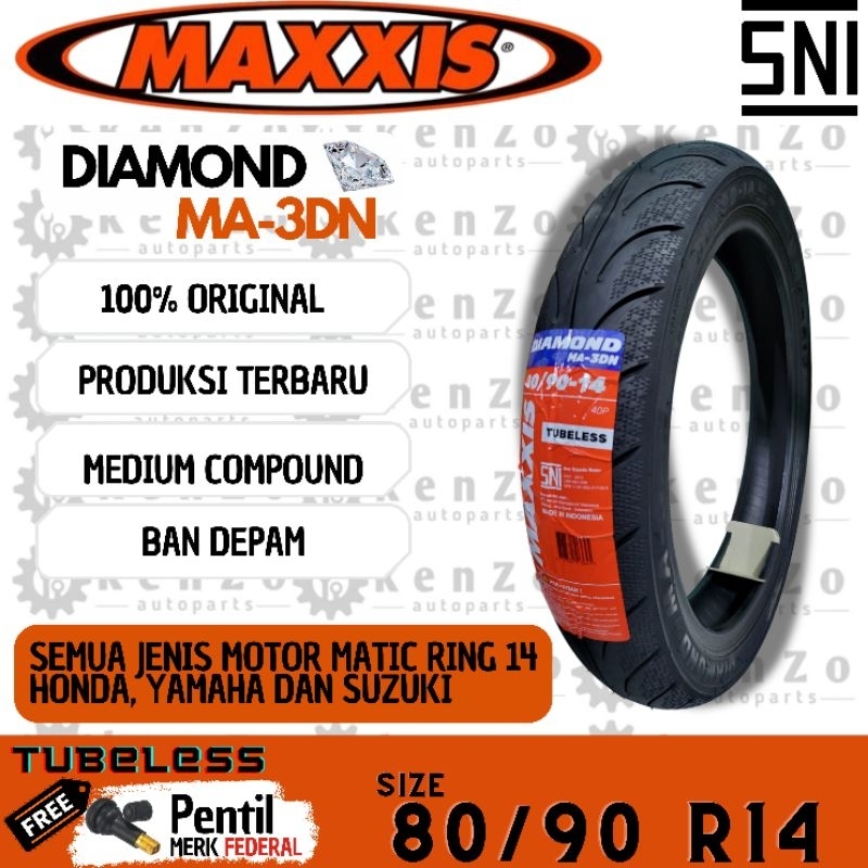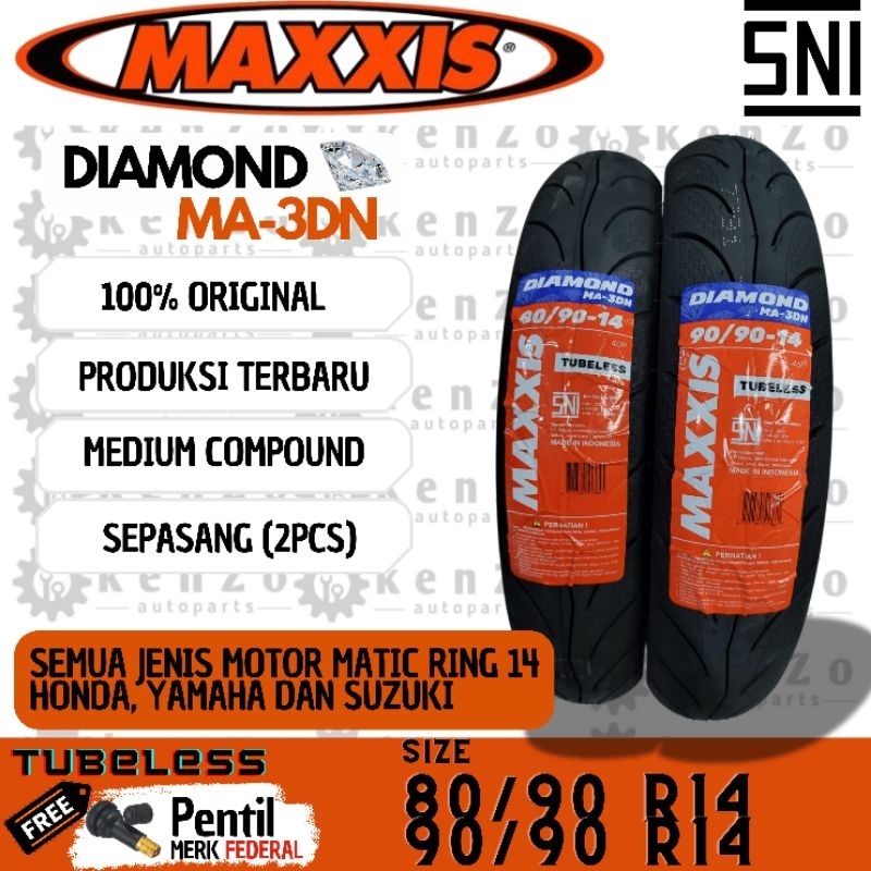 Ban Maxxis Sepasang Motor Honda Vario 110 125 150 Beat Street Pop Fi Esp Genio dll 80/90 90/90 Velg 14 Tubeless Diamond