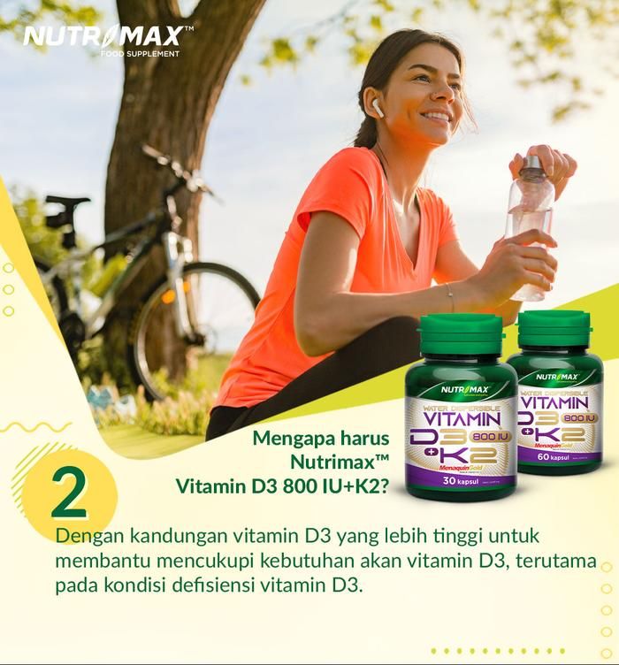 Nutrimax Water Dispersible Vitamin D3 + K2 Kalsium Calcium Kesehatan Tulang Osteoporosis Lansia