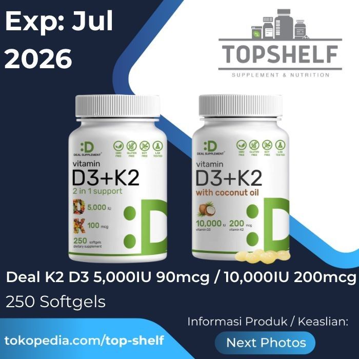 Deal Supplement Vitamin D3 5000IU K2 100mcg OR 10000IU Coconut Oil - 5000IU 250Sgels