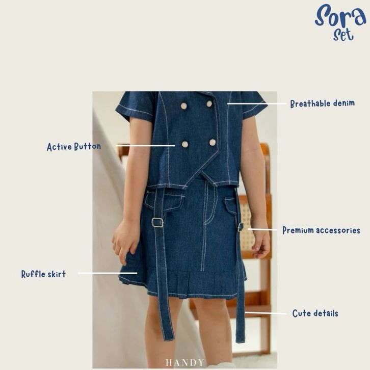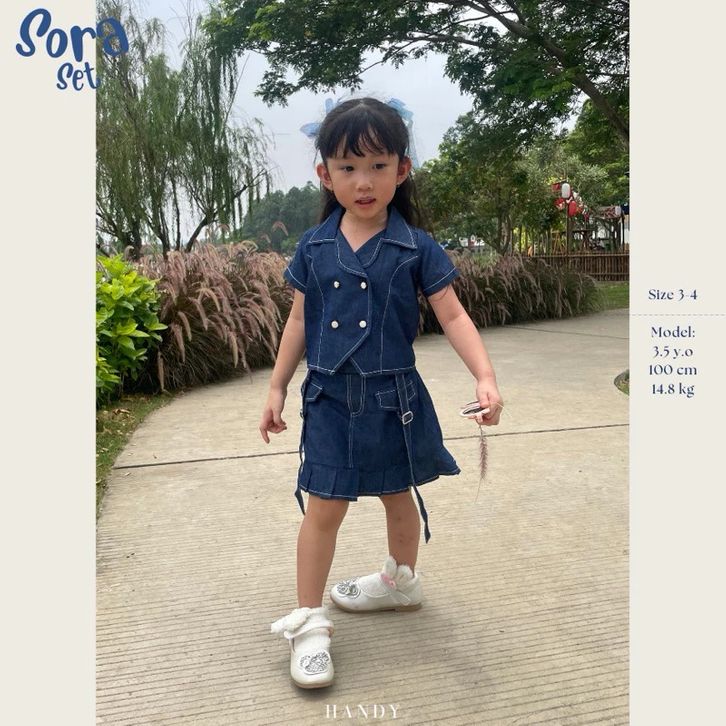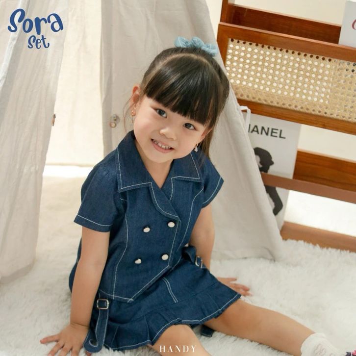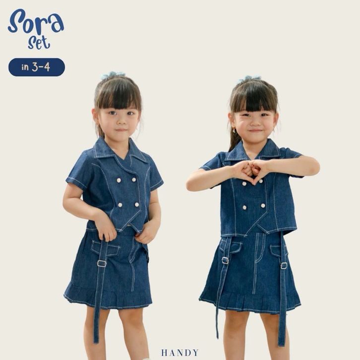 SORA ONE SET ROK DENIM ANAK PEREMPUAN SETELAN ANAK PEREMPUAN KEKINIAN BAJU LEBARAN ANAK CEWEK