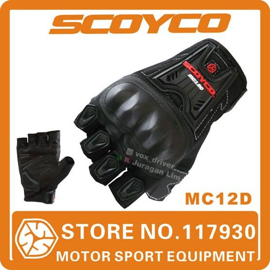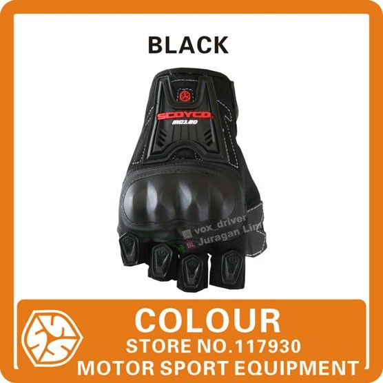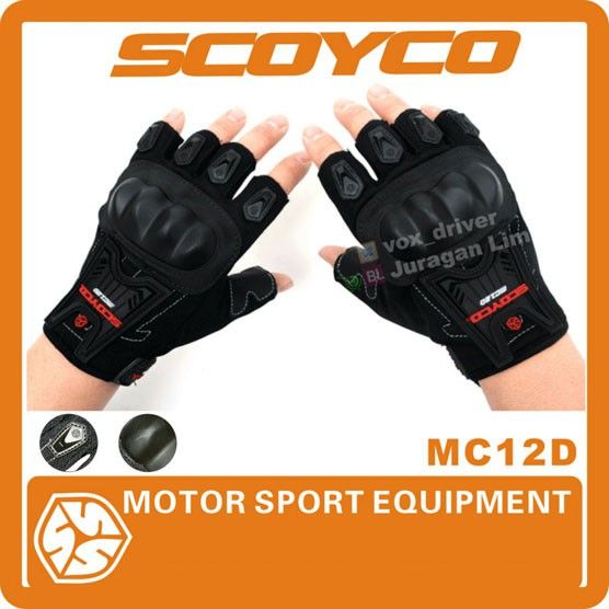 Sarung Tangan Motor Sarung Tangan SCOYCO MC12D Gloves MC 12D MC-12D - Half Jari Buntung - HITAM