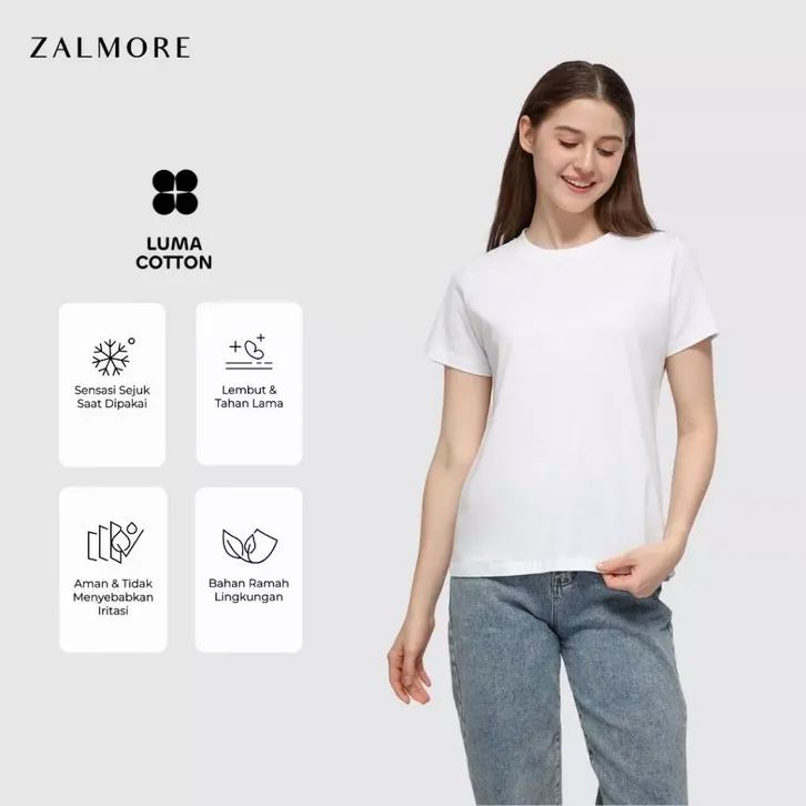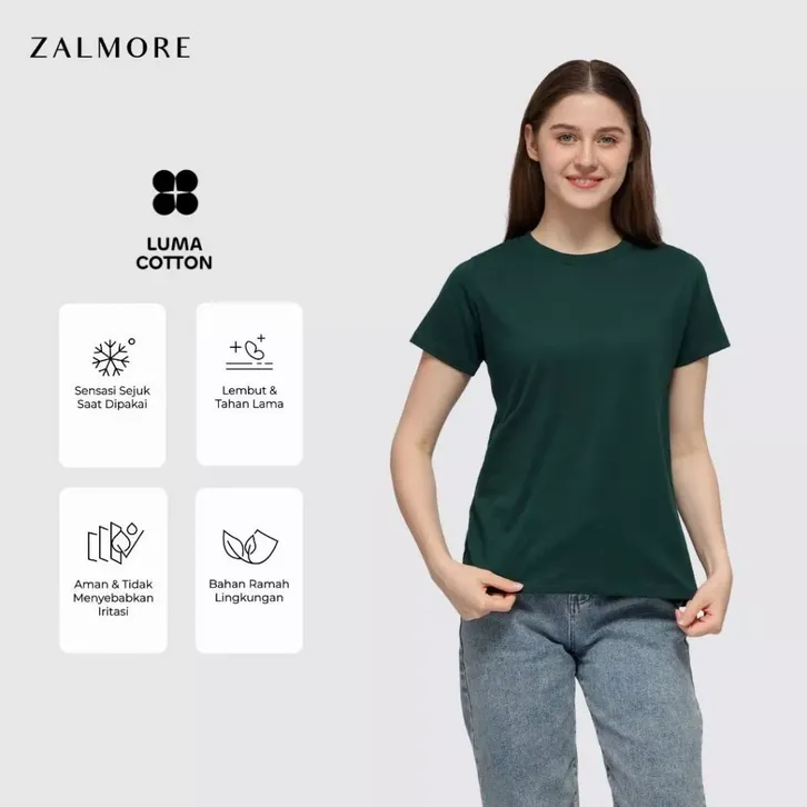 Baju Wanita Terbaru Kekinian Zalmore Women Oneck T-Shirt Basic LUMA Cotton Kaos Wanita Lembut Ringan Sejuk Anti Nerawang