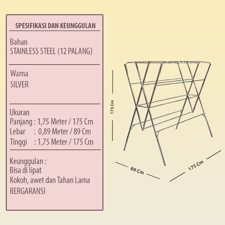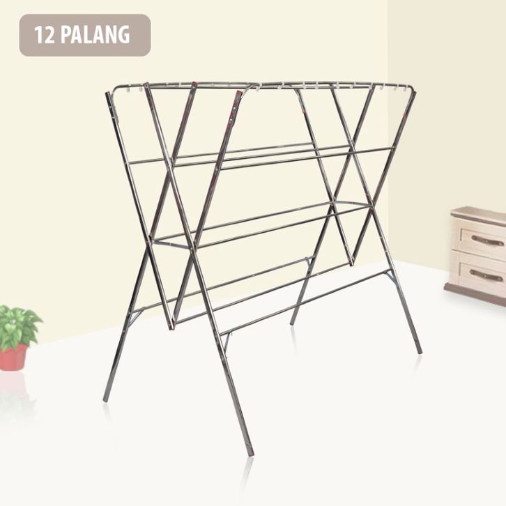 Jemuran Baju Stainless Jumbo Lipat Super Murah Tebal Anti Karat Jemuran Pakaian MUSTANG 12 Palang Kuat 180x180 Cm