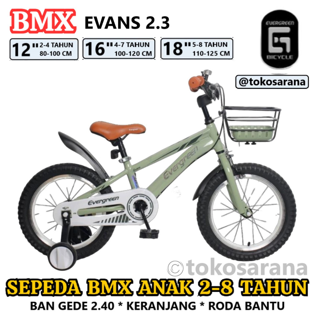 Sepeda Anak Evergreen Evans BMX 2-4 Tahun 12 Inci Steel OPC The Classic BMX Crank Kids Bike