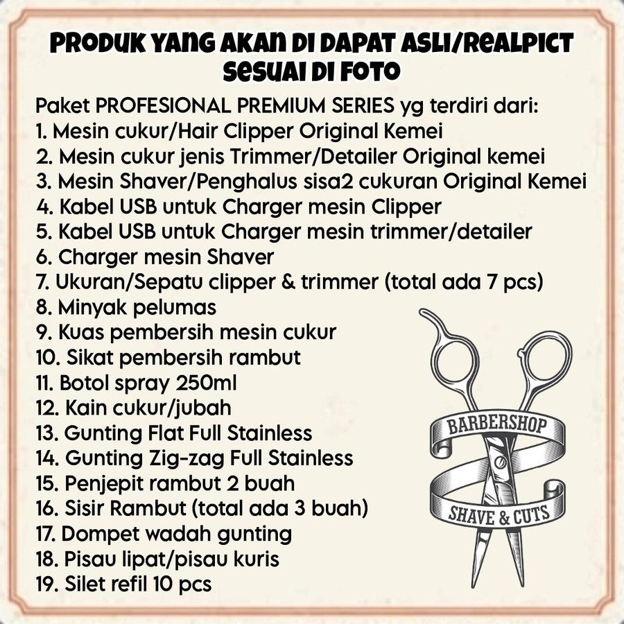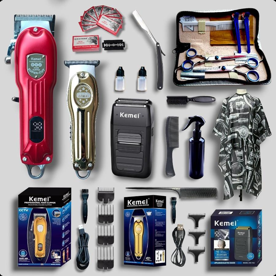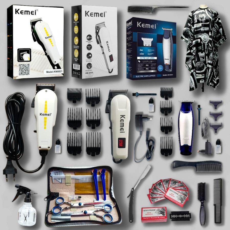 Paket Mesin Cukur Kemei Lengkap Alat Cukur / Usaha Pangkas / Barbershop / Salon Profesional Premium Series Original