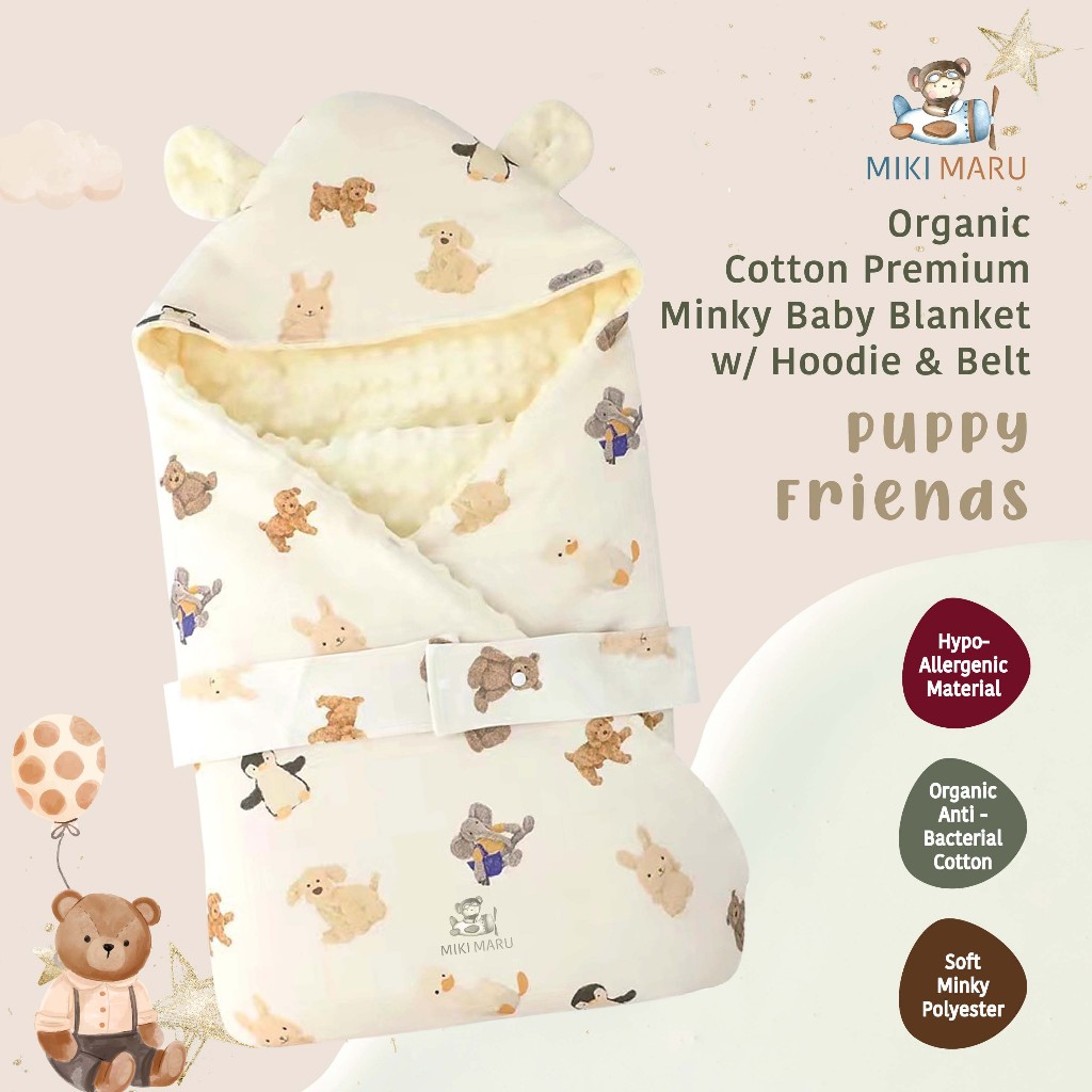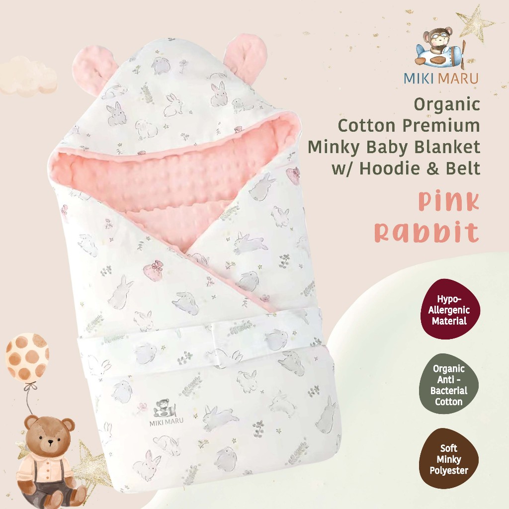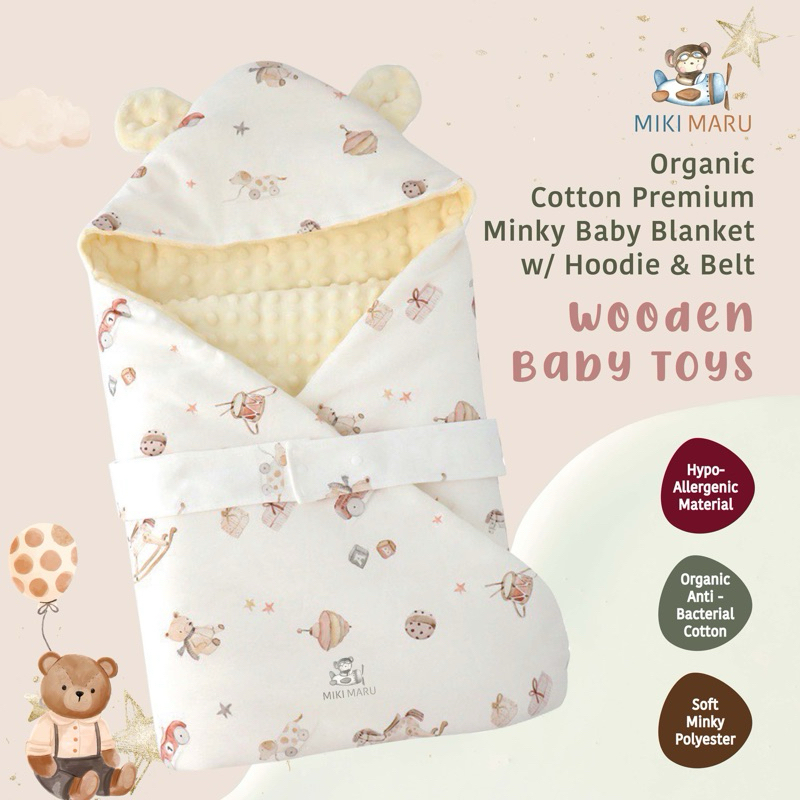 Mikimaru Selimut Topi Tebal Hoodie Bayi Anak Premium | Baby Blanket Organic Cotton Minky Muslin | Selimut Katun Halus Ba
