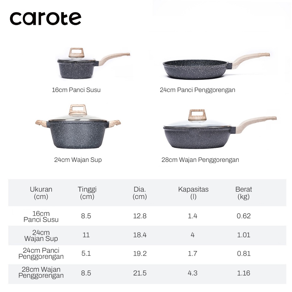[Star] CAROTE Set Peralatan Masak 7 PCS Lapisan GranitAnti Lengket Cocok Untuk Semua Jenis Kompor Panci Susu Wajan Soup
