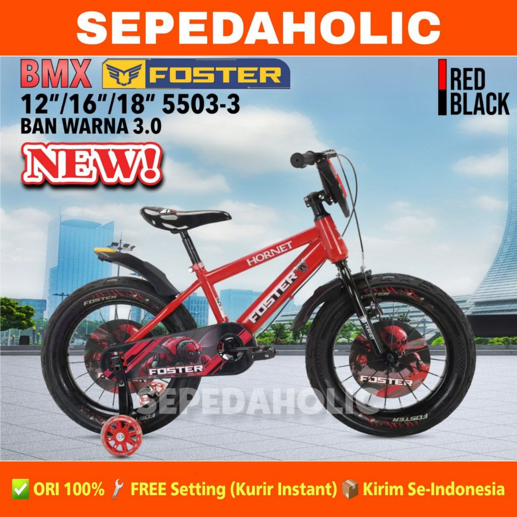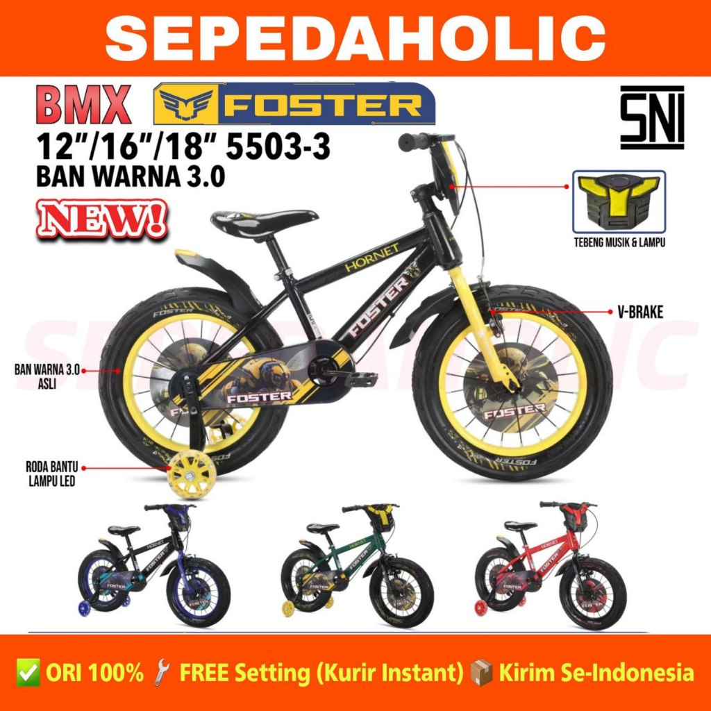 Sepeda Anak Laki BMX FOSTER 5503-3 Ban Jumbo 3.00 Musik Lampu Ukuran 12 16 18 Inch Usia 2-8 Tahun