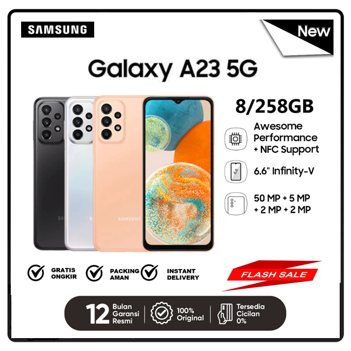 SAMSUNG GALAXY A23 5G 6/128GB GARANSI RESMI SEIN Snapdragon 695 5G NFC Battery Capacity 5000mAh Super Fast Charging