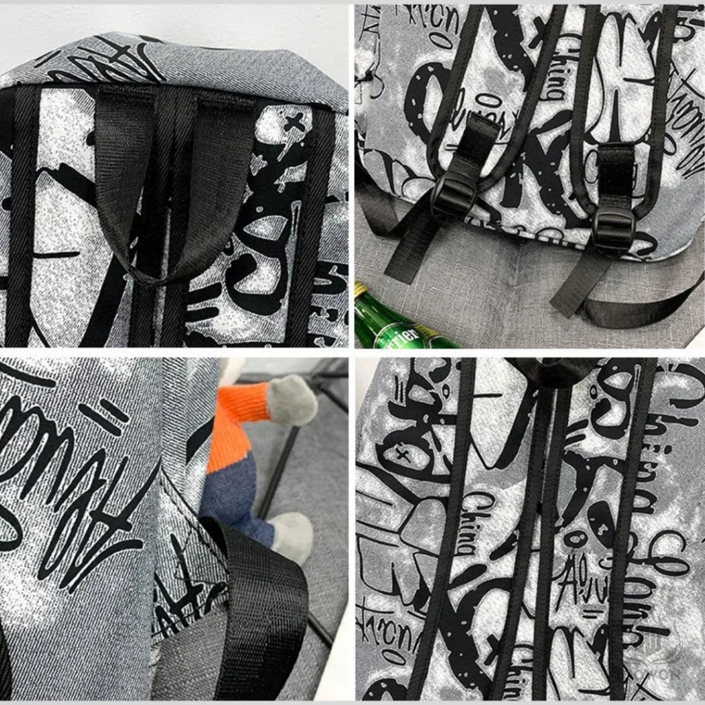 (FLASH SALE) Tas Ransel Motif Abstrak Casual Bahan Nylon Trendy / Tas Sekolah Unisex Terbaru Fashionable - WY10