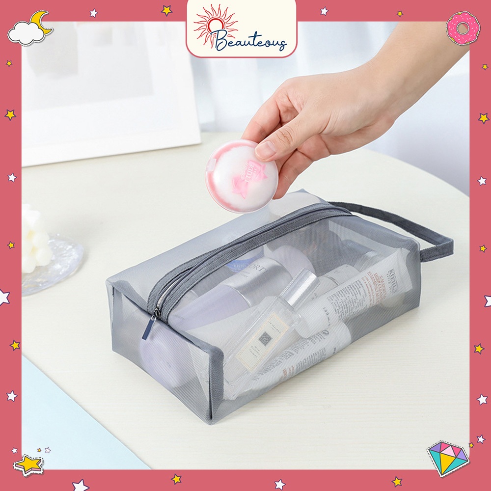 Pouch Penyimpanan Make Up Alat Mandi Travel Kit Transparan Organizer Dompet Alat Tulis Serbaguna