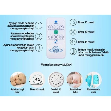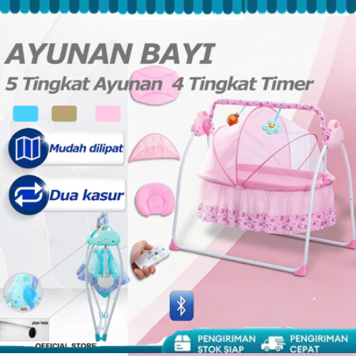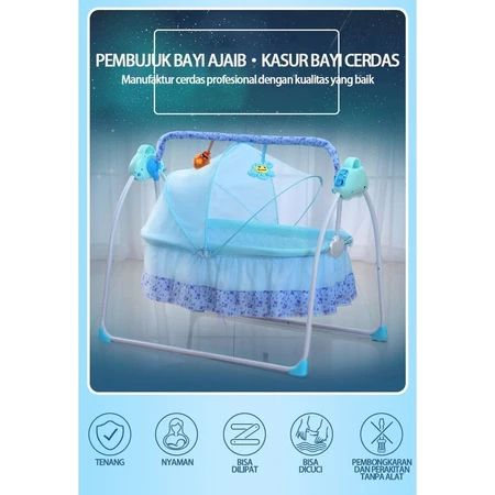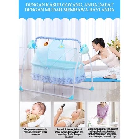 tempat tidur bayi goyang ayunan remote control Tempat tidur bayi yang aman dengan musik bluetooth