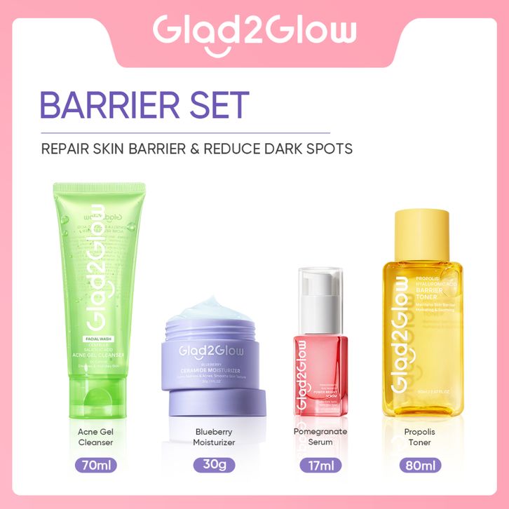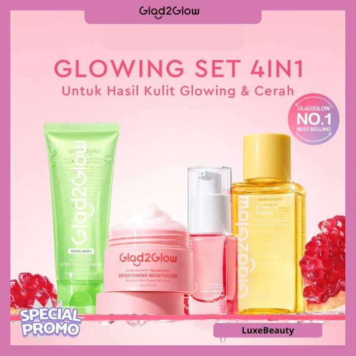 Paket g2g Glad2Glow 4pcs Paket Skincare Moisturizer Toner Serum Face Wash - Acne Care /Glowing / Anti Dark Spot