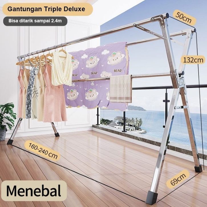 Jemuran Baju Lipat Jumbo Stainless Tahan Karat Kuat Ringan Hemat Tempat Murah Untuk Pakaian Basah Outdoor Indoor