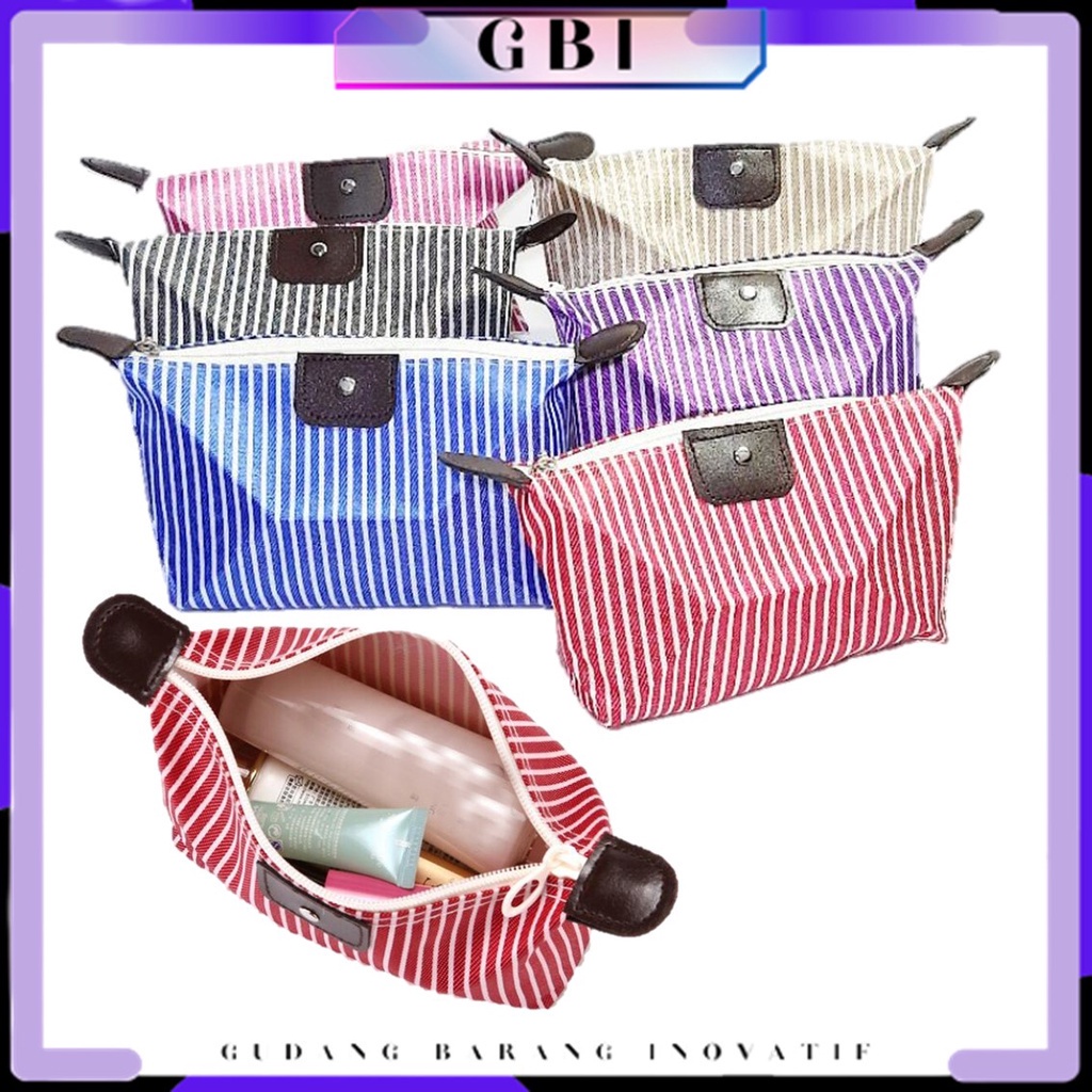 Kosmetik Makeup Alat Mandi Organizer Anti Air Motif Garis Kosmetik Pouch Garis Belang Murah