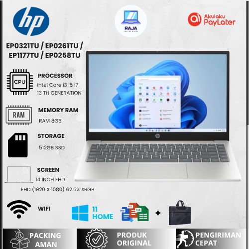 [Mall] LAPTOP HP 14 S CORE i3 i5 i7 GEN 13 UHD RAM 8GB 512GB SSD WINDOWS 11 HOME 14 INCH FHD OFFICIAL STORE