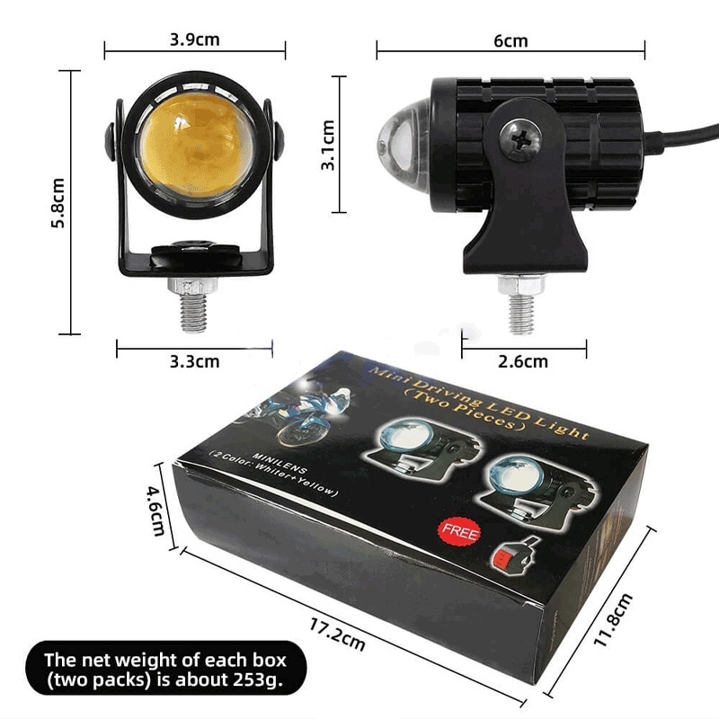 (2 lampu + saklar)Motorcycle lights lampu tembak laser 2 warna High low putih kuning waterproof / lampu led motor/ lampu
