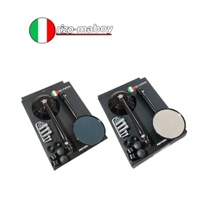 Rizo-maboy Racing - Spion Bulat Classic CNC Rizo-maboy Spion Clasik Universal Kaca Putih Dan Biru Japstyle Kaca Datar