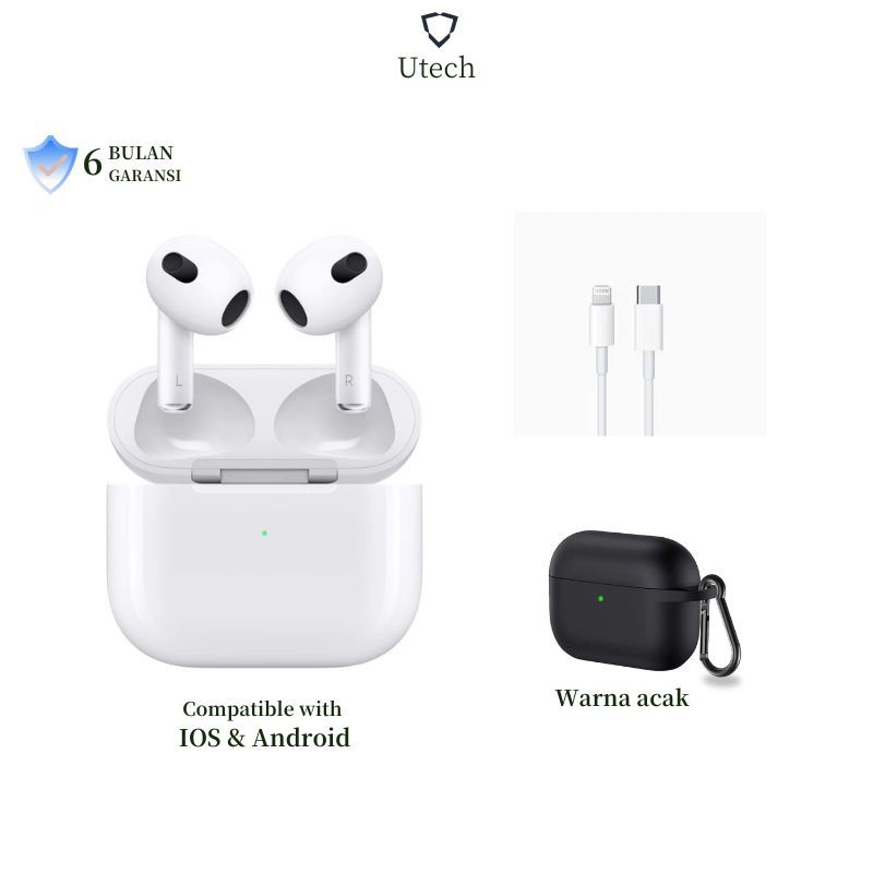 Utech Pods Gen3 TWS true wireless Earphone Bluetooth handset bluetooth + Premium Silicone Softcase with Hook for airpods