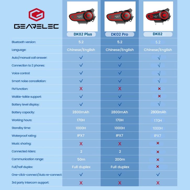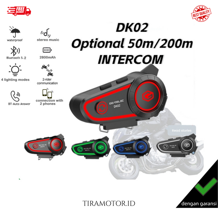 INTERCOM HELM WATERPROOF DK02 INTERCOM HELM GEARELEC BT5.2 IPX7 TAHANAIR 50-200M 2 RIDERS CONNECTED 2800mAh BERKUALITAS