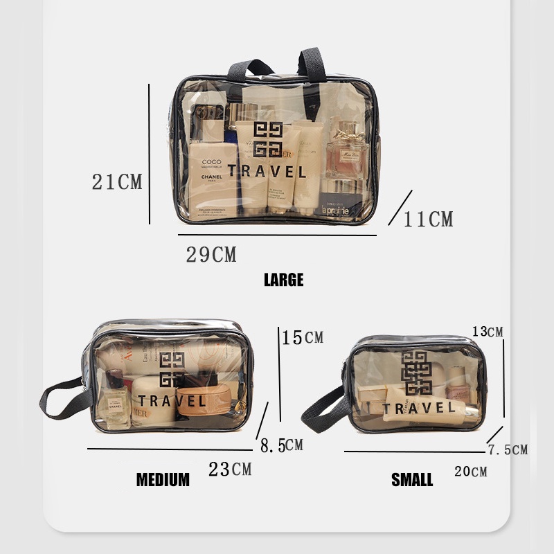 Tas Kosmetik Portable Travel Transparan /Pouch Make Up/Pouch Bahan Plastik Wash Bag Kapasitas Besar