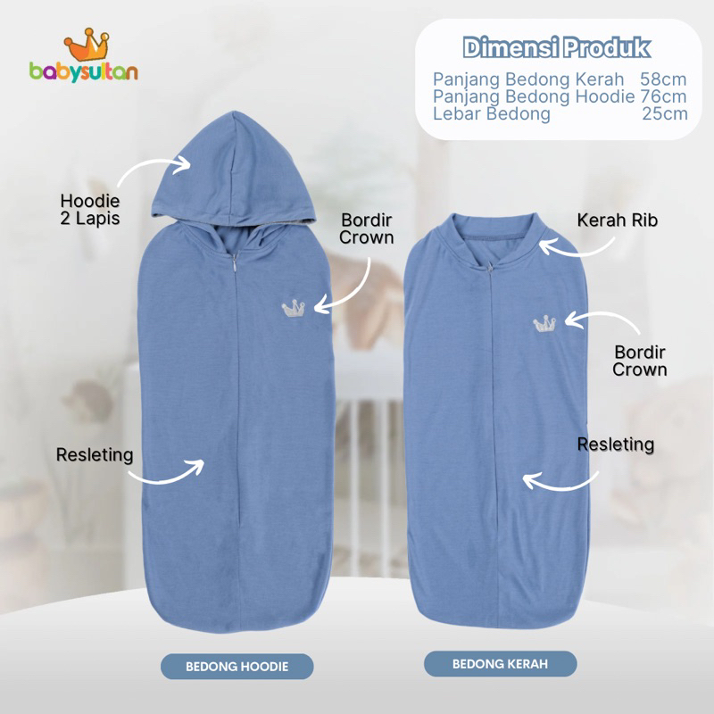 Bedong Bayi Instan Resleting Hoodie Topi dan Kerah Babysultan