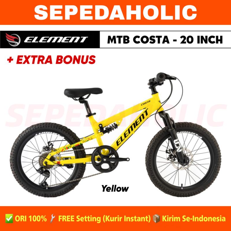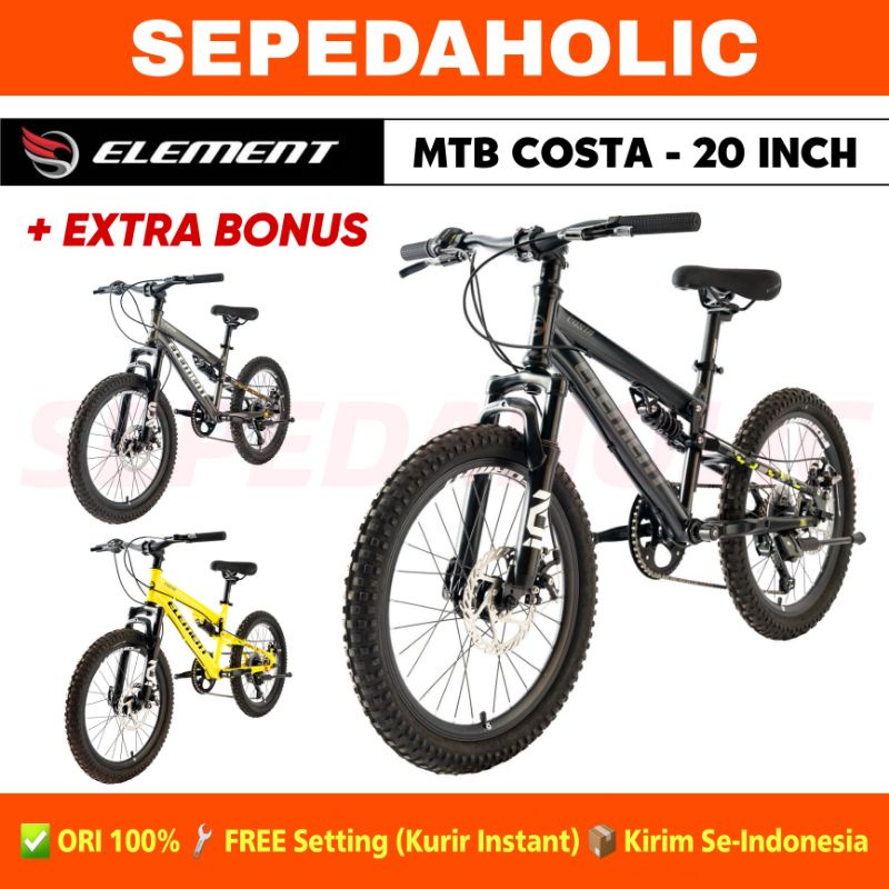 Sepeda Gunung MTB ELEMENT COSTA Ukuran 20 Inch 7 Speed Full Suspensi